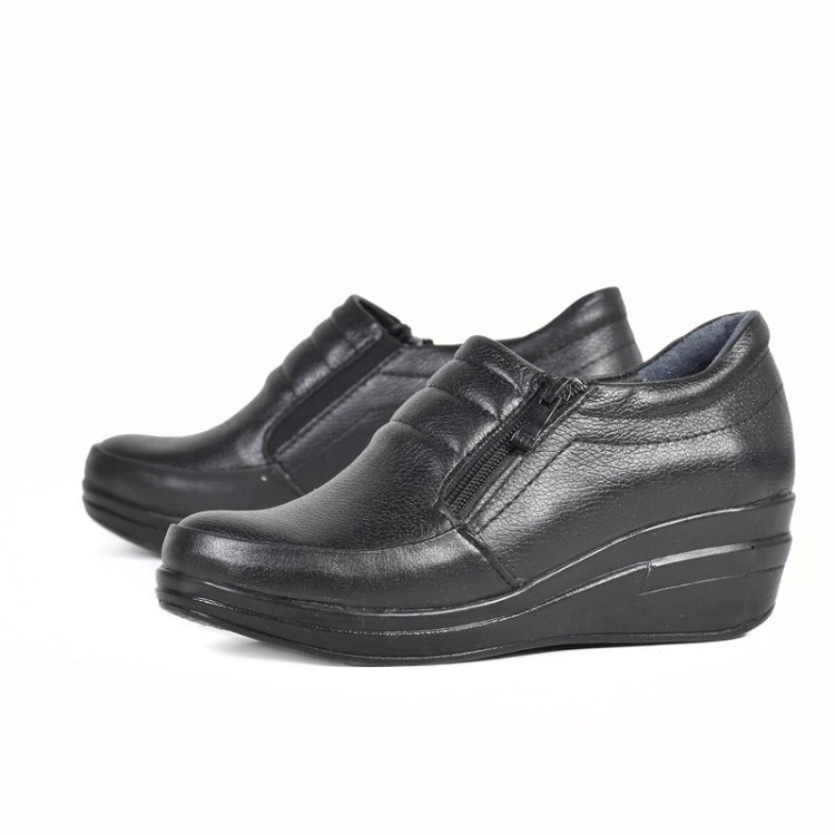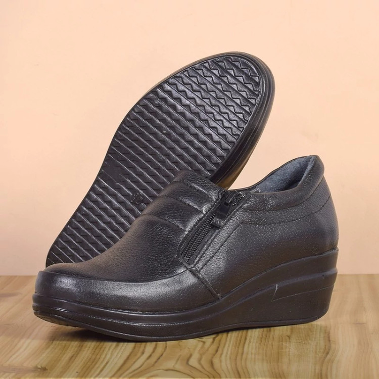 این کفش چرم زنانه دکتر فام یکی دیگر از سری کفش های تمام چرم و تمام طبی شرکت کفش طبی چرم دکتر فام تبریز است ، تمام تلاش در تولید این کفش بر این بوده است که در آن راحتی پا در اولویت اول قرار گرفته و پای شما در آسایش کامل در یک کفش واقعا طبی قرار گیرد . کفش فوق با بکارگیری از مرغوب ترین چرم طبیعی توانسته علاوه بر زیبایی ، دوام فوق العاده ای نیز داشته باشد. همچنین با توجه به بکارگیری کفی طبی و قالب سازی کاملا طبی ، راحتی بسیار زیادی را برای استفاده های طولانی در راه رفتن برای پای شما به همراه می آورد ؛ که این مهم ترین مشکل در کفش های کالج قلمداد می شود . در واقع همین تخت بودن زیره و طبی نبودن کفش است که موجب آسیب به پا و کمر می شود که این مشکل در این کفش با توجه به طراحی آن کاملا حل شده است و بسیار مناسب برای افرادی است که با بیماری در ناحیه پا ، دست و پنجه نرم میکنند و یا با مشکل دیابت مواجه هستند. این کفش علاوه بر استحکام فوق العاده بالا تضمینی است برای راحتی پای شما در تمام مدتی که در داخل کفش قرار دارد. لازم به ذکر است که این کفش تمام چرم بوده و حتی کفی داخل آن نیز از چرم میباشد.
